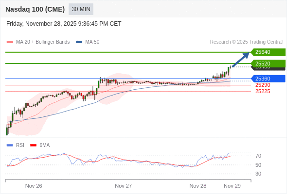 在 25360 之上,看涨,目标价位为 25520 ,然后为 25640 。