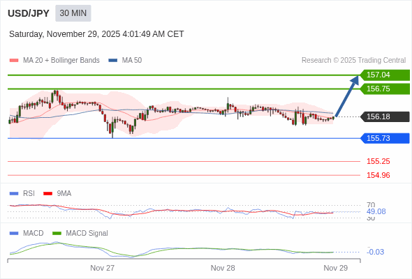 美元/日元 当日内 : 有上涨的可能,目标价位定在 157.04 。