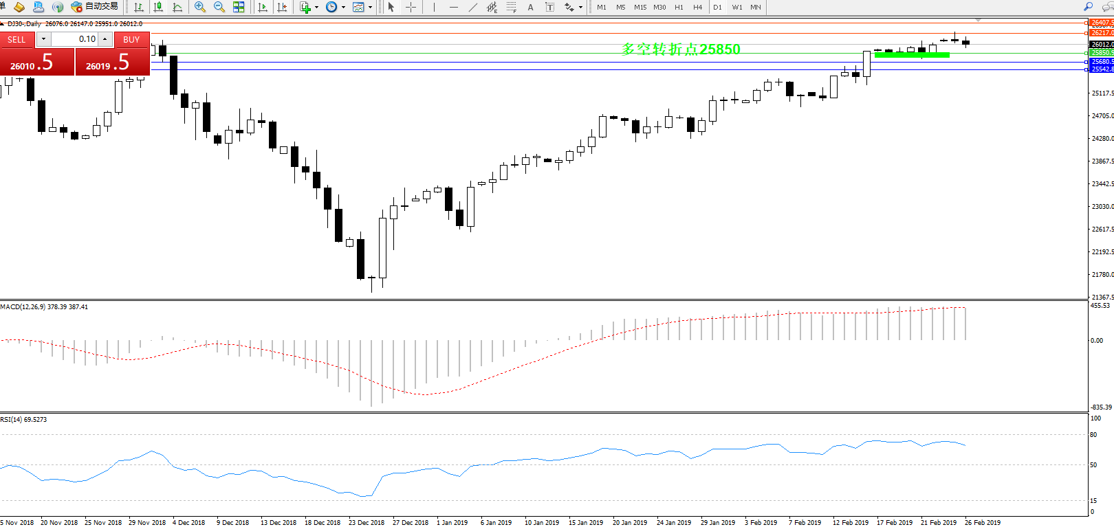 美国股市三大股指周二收盘小跌,盘中交投震荡,因投资者关注良莠不齐的经济数据和企业消息,许多人保持观望态度,等待诸如中美贸易谈判等问题明朗化。道琼斯工业平均指数收跌33.97点,跌幅0.13%,报26057.98点。鲍威尔证词总结显示:美联储能在货币政策问题上保持耐心。估计美联储未来储备的合理起点是大约1万亿美元加上缓冲资金。拒绝置评耶伦对特朗普不懂美联储,也不懂经济政策的评价。对于油价驱动型通胀而言,美国石油产业是一个有效的冲击减震器;美国经济存在相互冲突的信号。在贸易和其他政策上提供确定性具有重要意义。如果不能上调债务上限,将造成不确定性。美国本土经济形势向好,提及全球经济增速放缓和英国脱欧等因素。美国银行系统相当强劲。