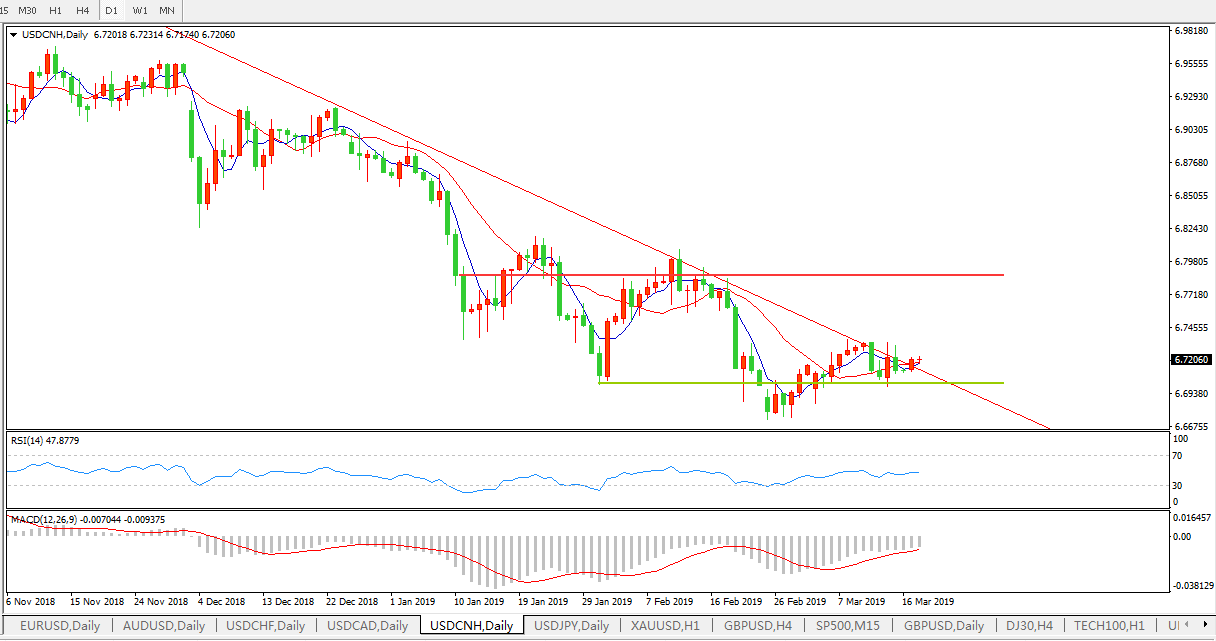 美元兑人民币USDCNH 日线图: