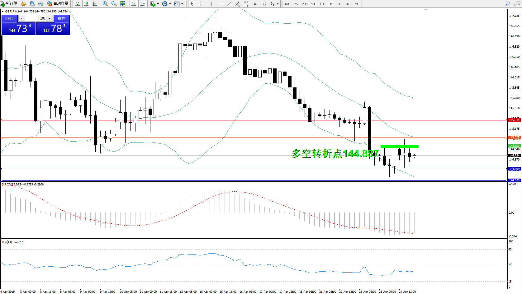 交易策略:144.887下方看跌,目标144.509、144.323