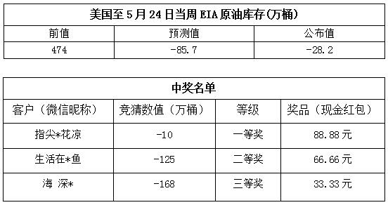 2019年5月第4期“EIA大竞猜”活动的中奖结果已出,获奖信息如下: