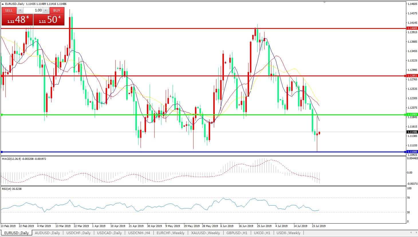 欧元迎来六月飞雪,德拉基表示对目前的通胀状况不满意,在通胀长期未能达到目标之后,2%不会是上限,以弥补之前低于目标造成的影响。欧元区的通胀率提高到接近2%值得怀疑。与此同时,金融稳定面临的风险继续上升。欧元隔夜上演过山车剧情,德拉基表示,正在设计一套刺激方案,可能在9月份出台,使得欧元最低跌至1.1100关口附近,但随后他又称没有讨论降息幅度,欧元迅速反弹。
