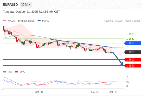 在 1.1665 之下,看跌,目标价位为 1.1610 ,然后为 1.1590 。
