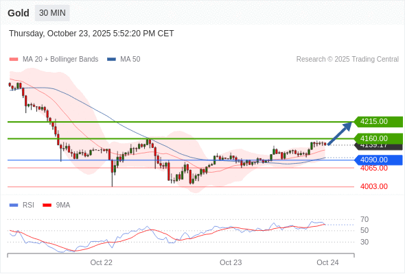 黄金现货 当日内: 目标位为4160.00。