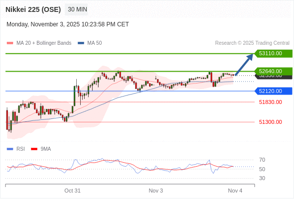 日经225股指期货 (OSE) 当日内: 超短线(当日内)支撑位在52120.00附近。