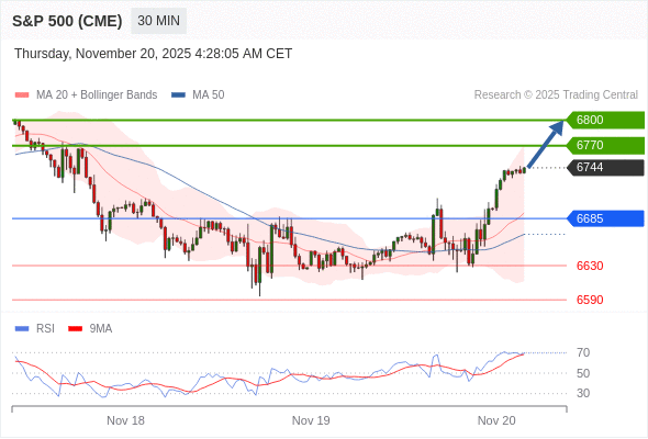 在 6685 之上,看涨,目标价位为 6770 ,然后为 6800 。