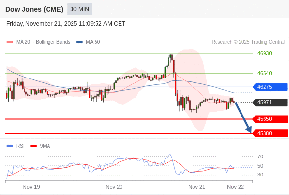 在 46275 之下,看跌,目标价位为 45650 ,然后为 45380 。