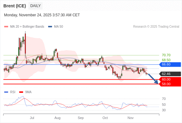 交易策略: 在 66.60 之下,看跌,目标价位为 60.00 ,然后为 58.00 。