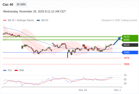 在 7940 之上,看涨,目标价位为 8085 ,然后为 8120 。