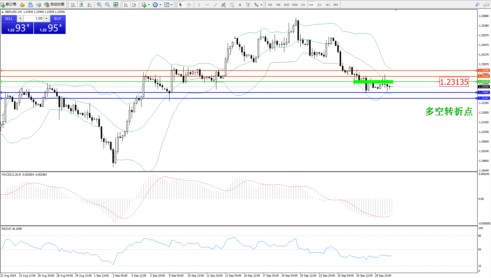 交易策略:1.23135下方看跌,目标1.22685、1.22441