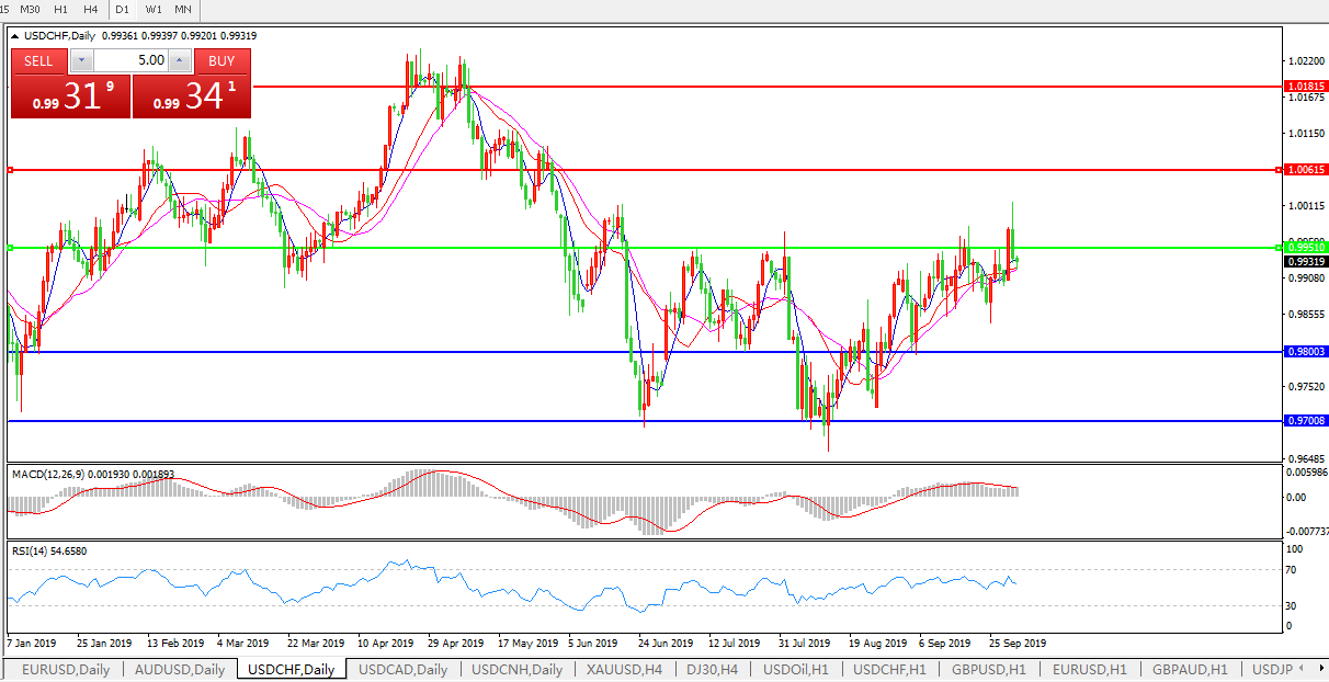 交易策略:0.9950下方看跌,目标0.9800、0.9700