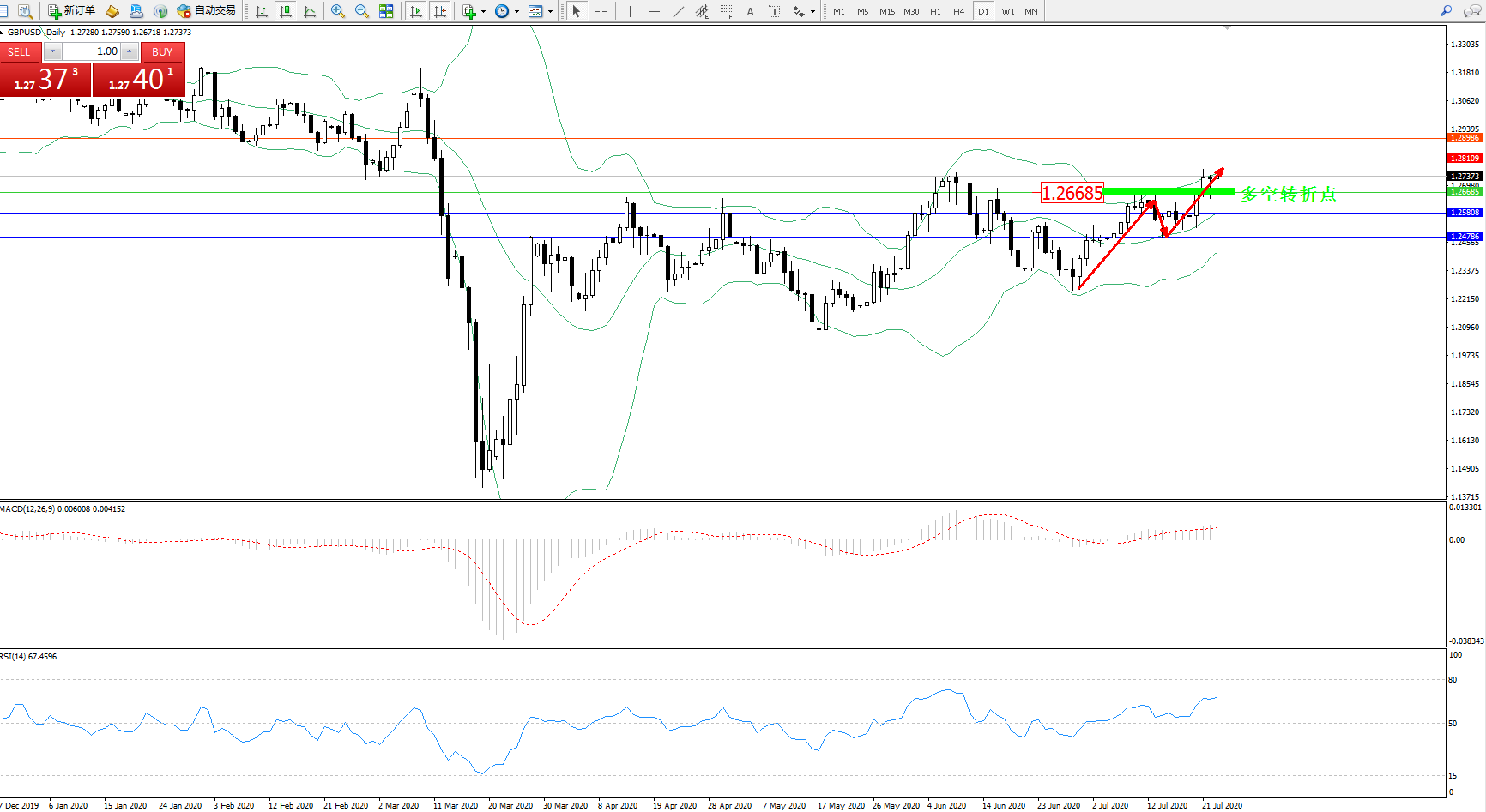 交易策略:1.26685上方看涨,目标1.28109、1.28986