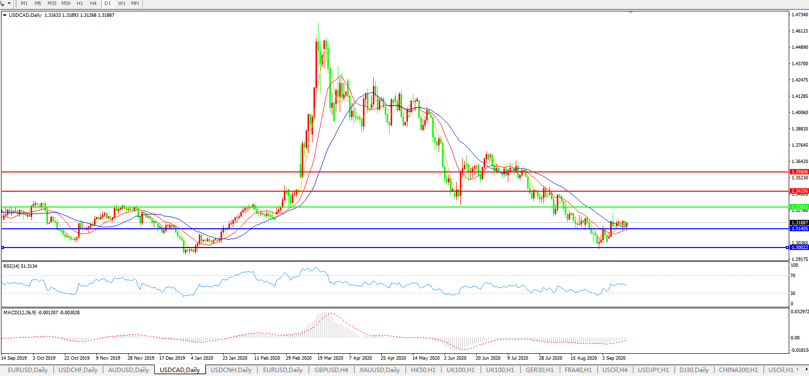 美元兑加元USDCAD 日线图: