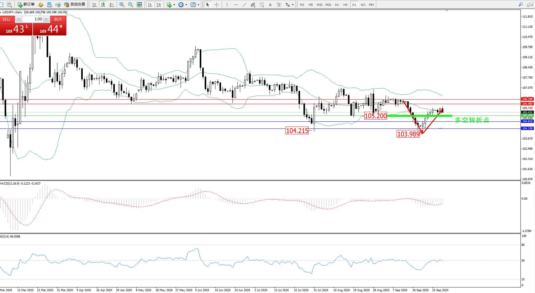 多空转折点:105.200