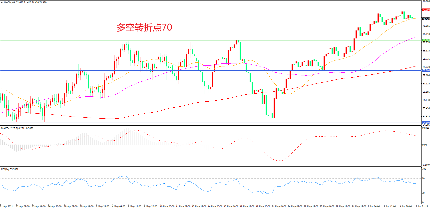 交易策略:在70.00之上看涨,目标72.00         75.00