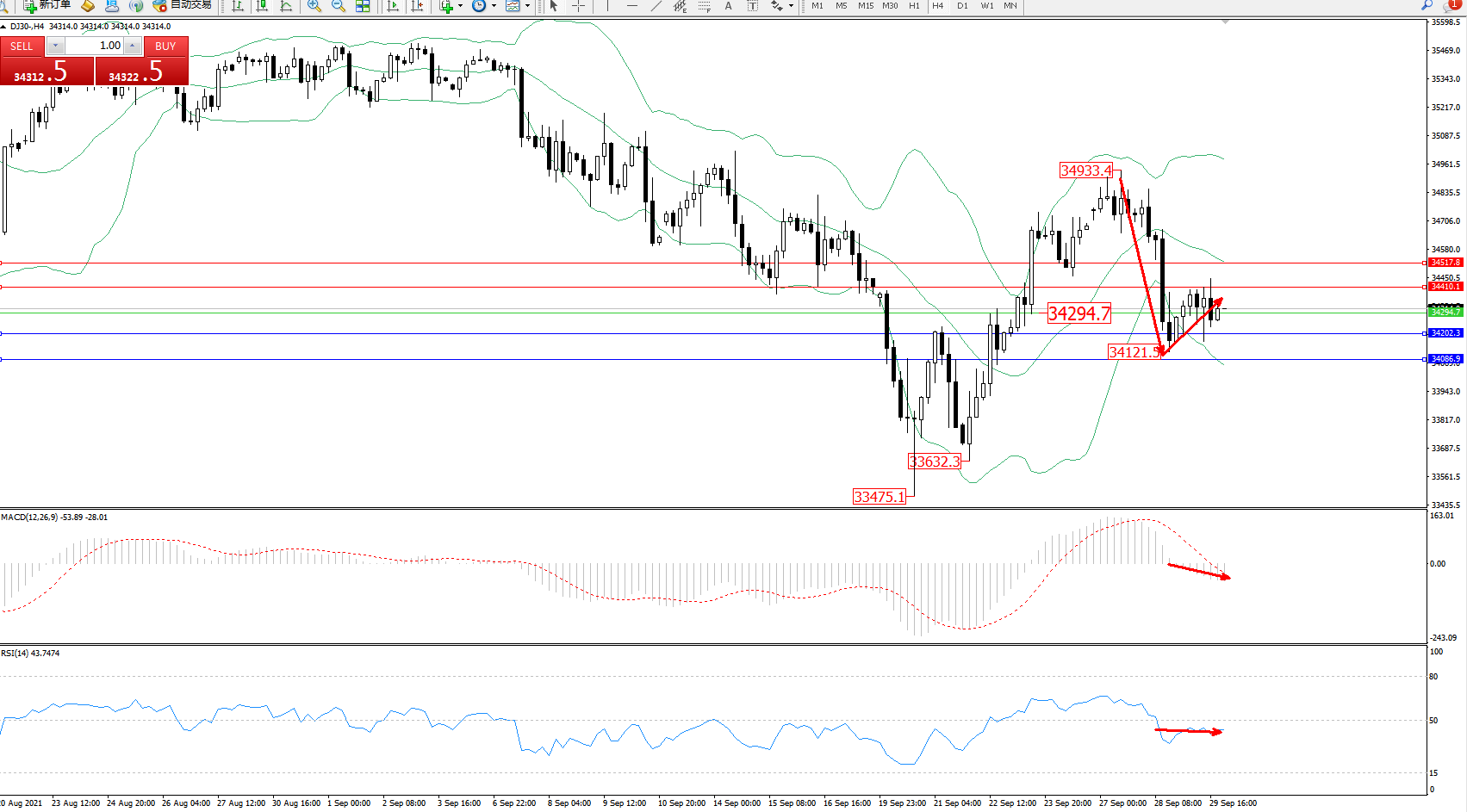 道琼斯指数9月29日(周三)收盘上涨90.93点,涨幅0.27%,报34390.92点;美股表现反复,三大股指涨跌不一,美联储戴利:预计今年年底将达到缩债标准,就业方面取得相当大的进展,就业趋势良好,距离加息还有很长的路要走,不认为可以在2022年加息,数据显示通胀有放缓迹象,这令人鼓舞,我认为明年不会达到加息标准,但如果我们这样做,对经济来说将是一个“巨大的胜利” 。通胀风险仍然存在,美联储致力于改革以防止利益冲突问题,预计更高的通胀数据将持续到2022年,距离美联储谈及取消宽松政策仍有一段时间,不能解决债务上限问题可能是有害的、破坏性极大的。