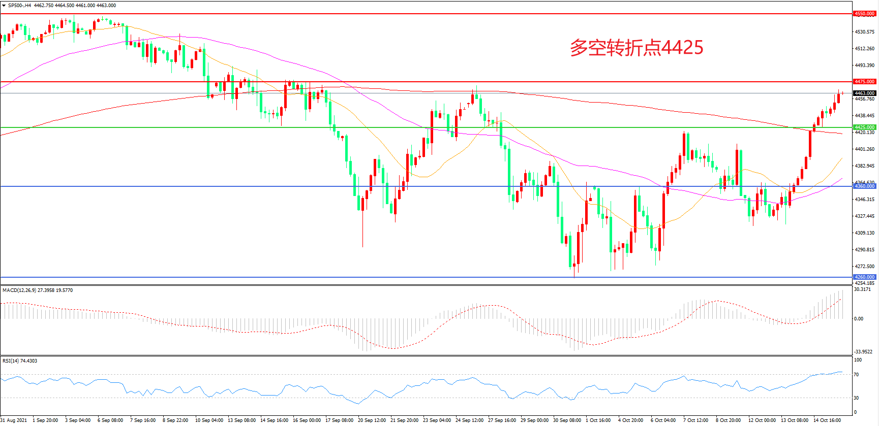 多空转折点:4425.00