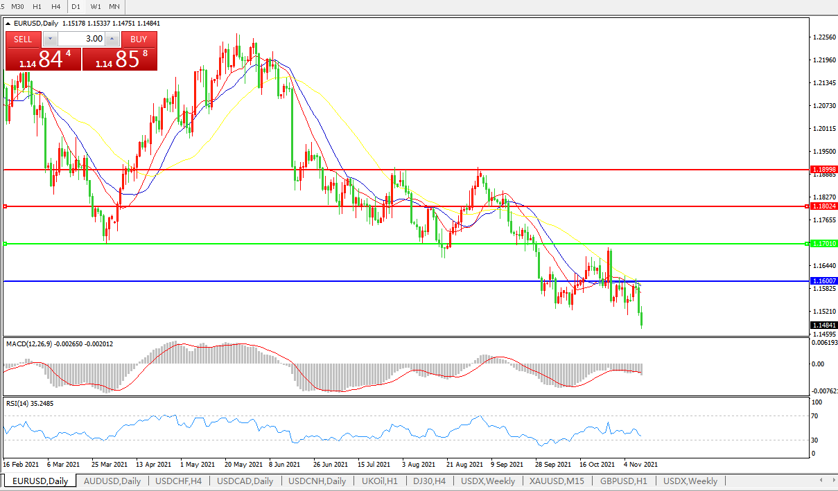 技术面简析:日图均线再度呈空头排列,汇价骤跌,MACD运行于0轴下且量能稍微放量,RSI拐头下行 ,预计短期汇价大概率将进一步下行。