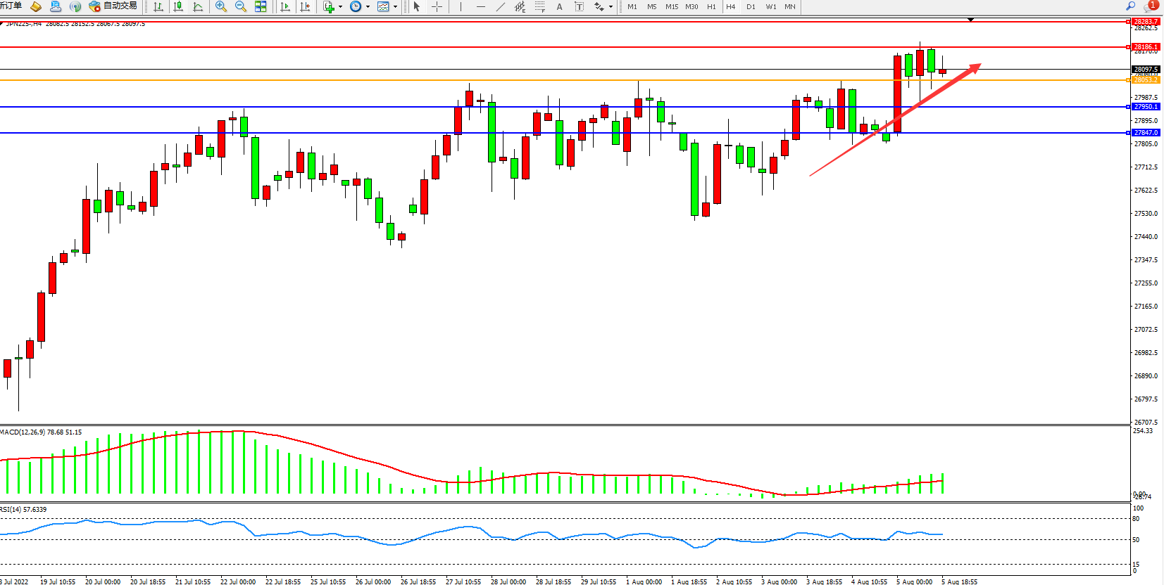 日经225指数8月5日(周五)收盘上涨238.30点,涨幅0.85%,报28170.50点。日本6月家庭支出出现四个月来的首次增长,对旅游服务的需求上升,为经济复苏前景带来积极信号。