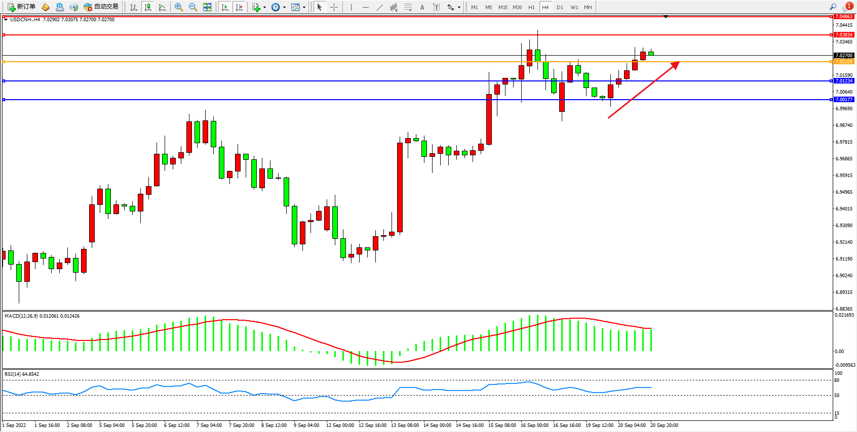 备选策略:7.02320下方看跌,目标7.01234、7.00177