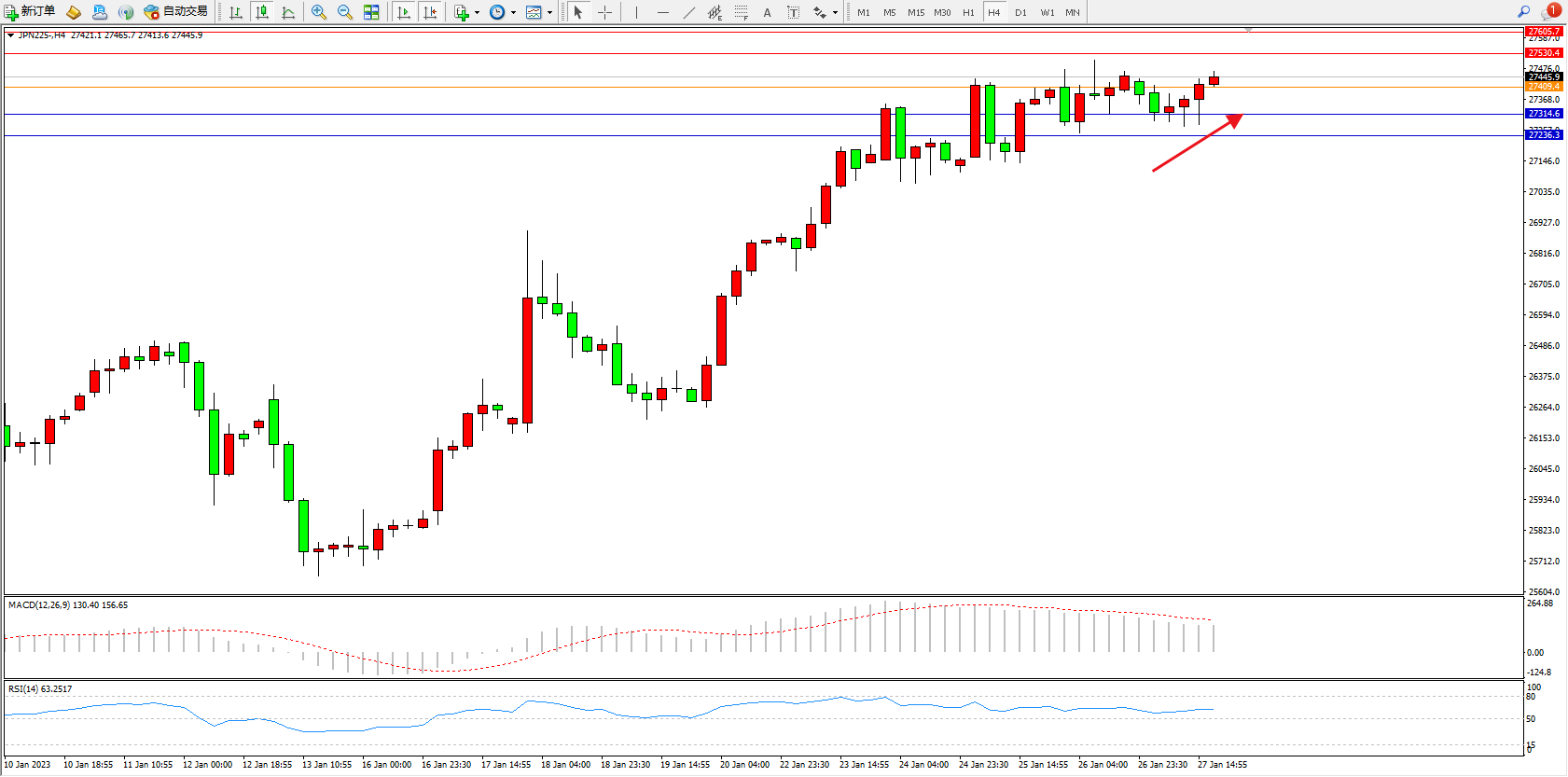 日经225指数今天收盘报27382.56点,涨幅0.07%,日本东京1月核心消费者物价指数(CPI)同比增长4.3%,创下近42年来最快同比涨幅,使日本央行继续面临逐步退出经济刺激措施的压力。